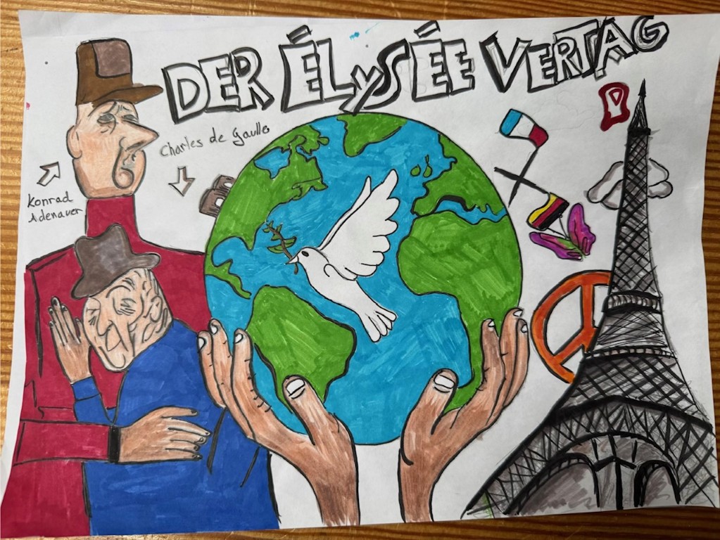 Die GewinnerInnen des Deutsch-Französischen Zeichenwettbewerbs Etwa 160 Schülerinnen und Schüler und Lehrerin und Lehrer haben am 22. Januar zum Tag der deutsch-französischen Freundschaft für das schönste Bild abgestimmt.